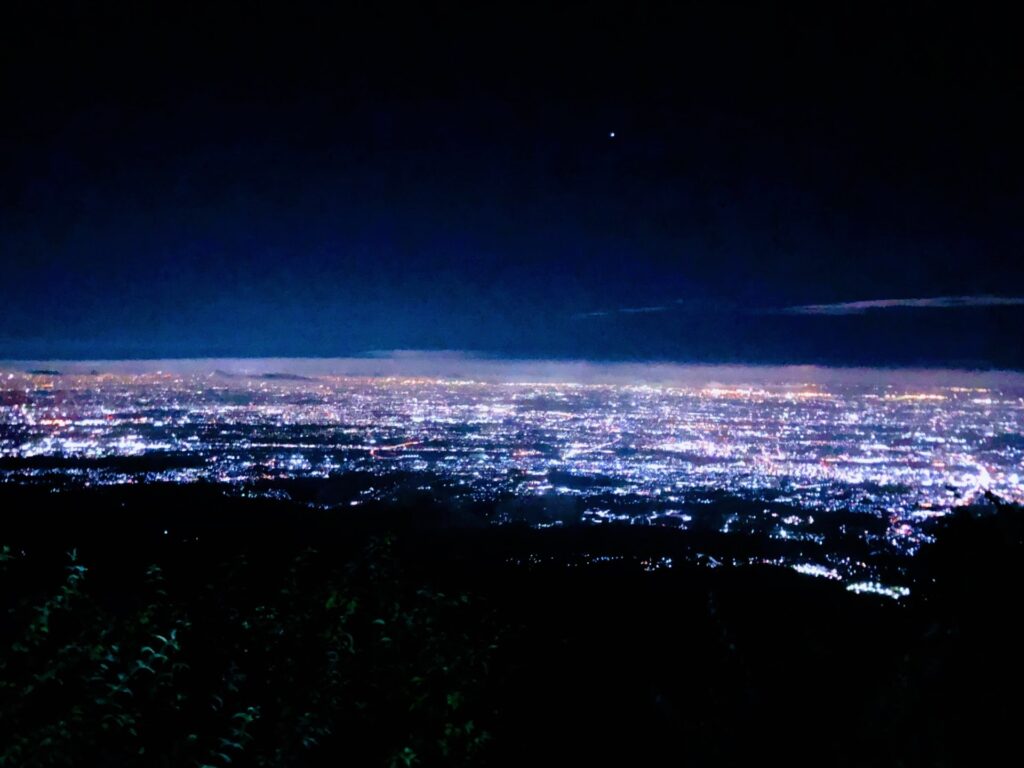 〈山頂から臨む〉 山頂からの素晴らしい夜景。 目の前に広がる関東平野。遠くは新宿の高層ビルの一群が見えます!!