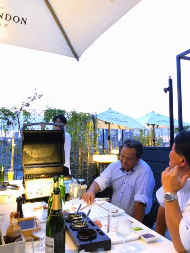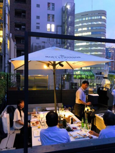 店内を抜けて外階段を登ると、そこは表参道のデザイナーズビルの屋上で、手ぶらで ROOF TOP BBQ が楽しめるプライベート感満載のエリアです!!