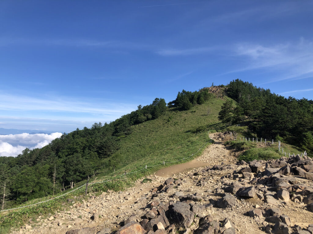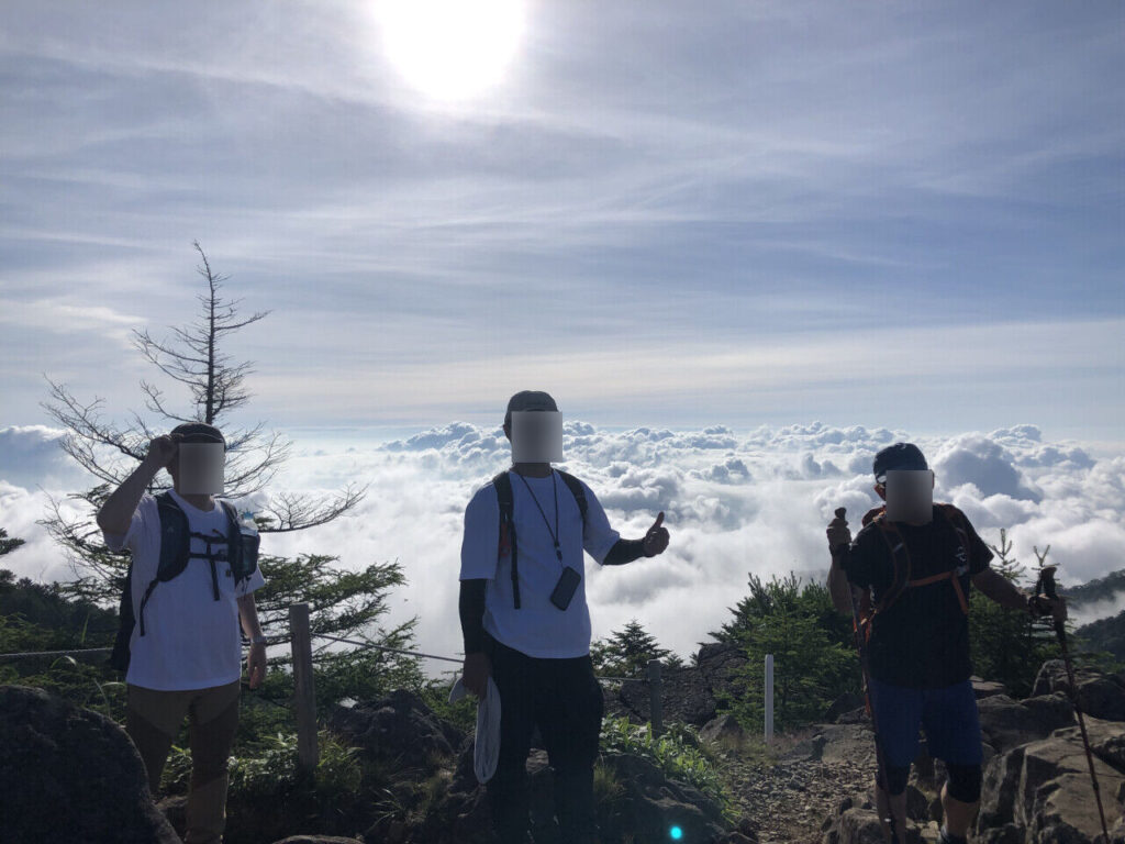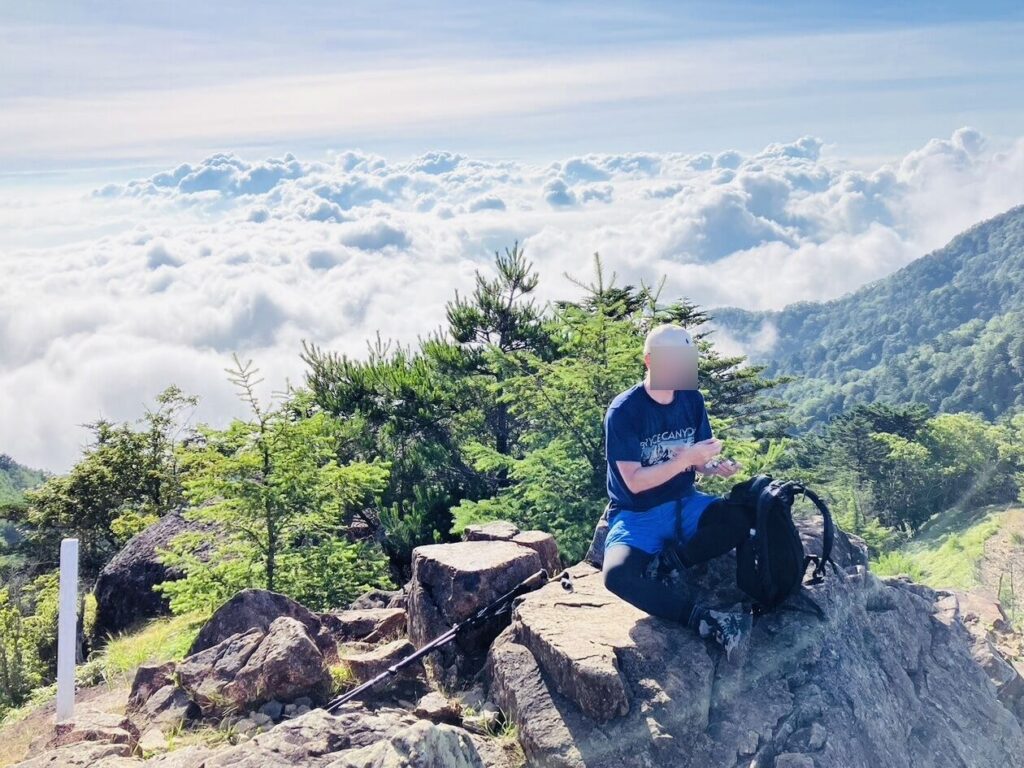 〈雲海を背に〉 賽ノ河原から菩薩峠へ向かう途中、ちょっと休憩しましょう!