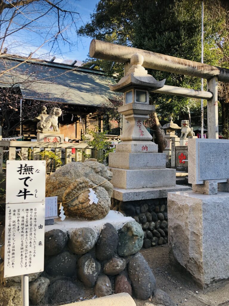 〈撫で牛〉 撫で牛は、病気平癒のみならず、諸願成就にも効力があるとされ、開運を信じて常に牛の身体をなでていれば、出世はもとより、 万事願いがかない、みずから思いもよらない幸運に恵まれることさえあるといわれます。 牛は菅原道真公の「おつかい」と考えられています。