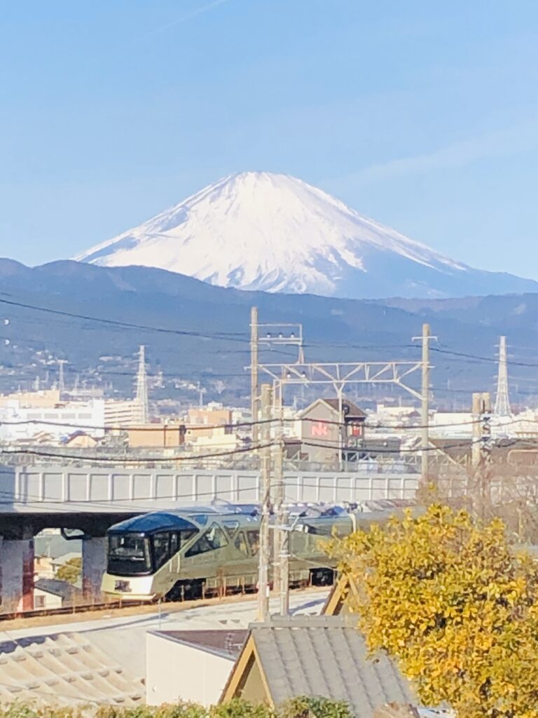 〈TRAIN SUITE 四季島〉 富士山の目前を、TRAIN SUITE 四季島が運行していました。 全室スイートルームの旅周遊型寝台列車。 コンセプトは「深遊探訪(しんゆうたんぼう)」。 いつかは乗ってみたいですね!