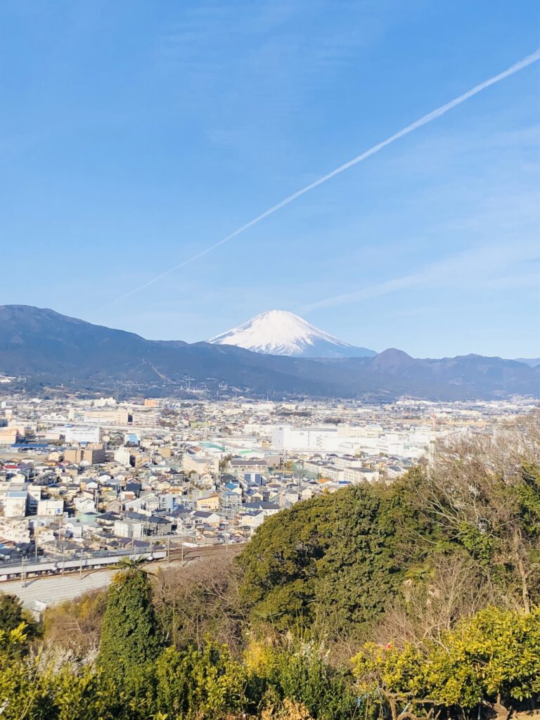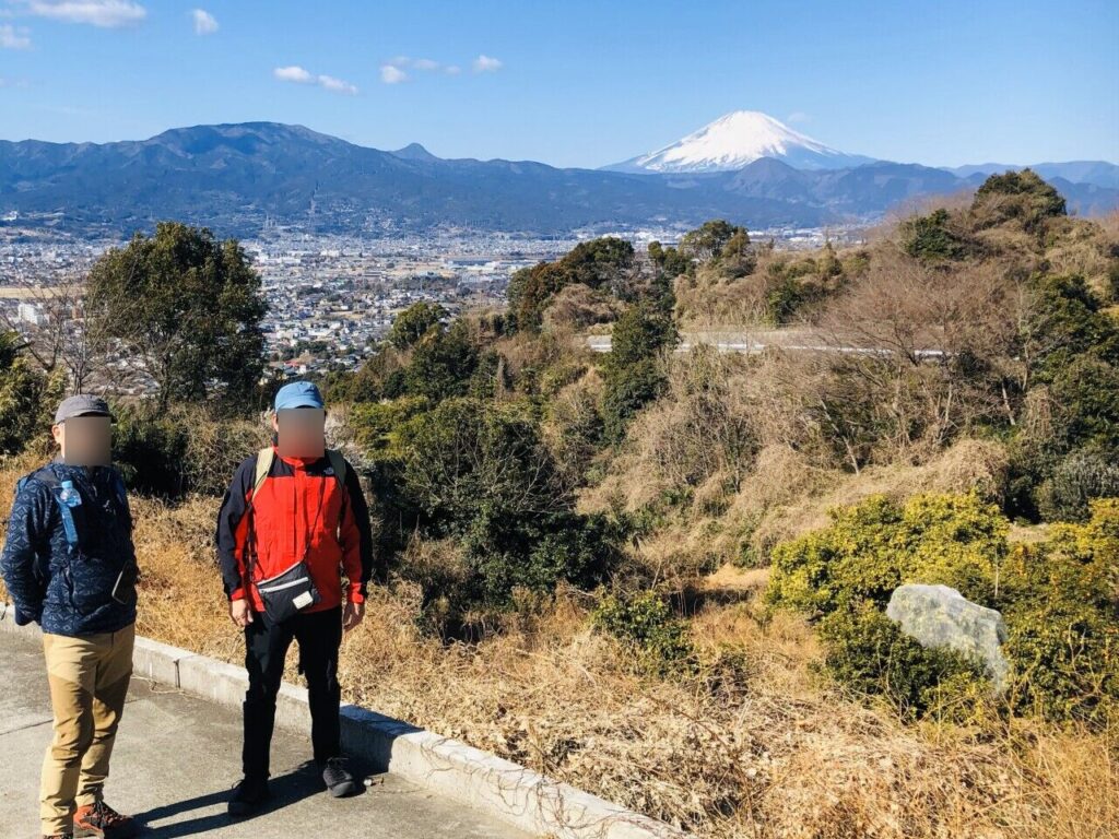 〈晴天の空に〉 しばらく、山道を進むと眼下に小田原の街並みと富士山が見えてきました。