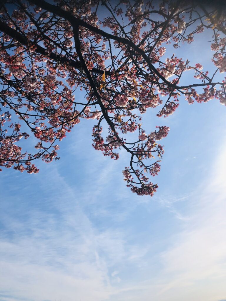 〈川津さくら〉 梅の花の前に、桜が咲いていました。