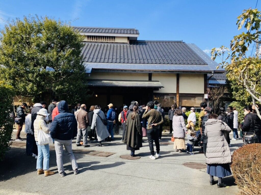 〈開店の時間です!〉 間もなく開店時間のため、店の前まで戻ってきました。 開店前の大行列! さすが人気店ですね!