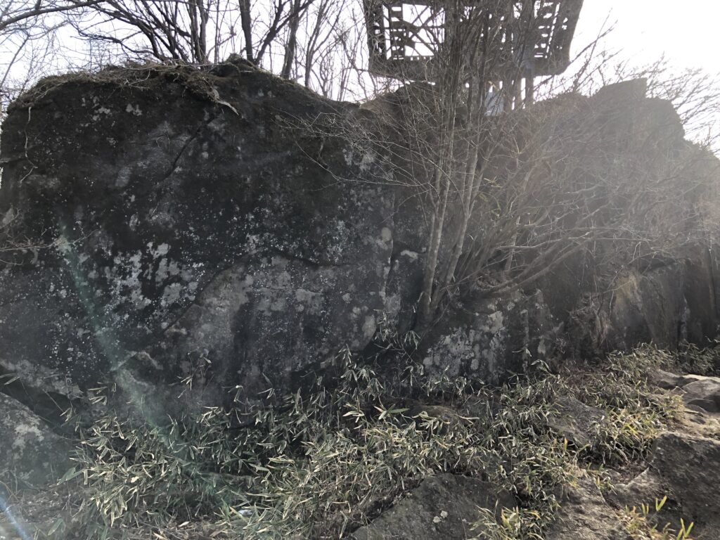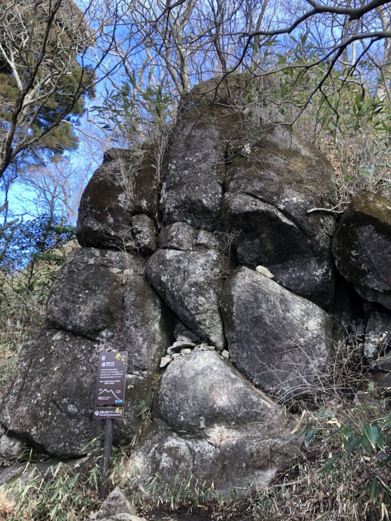 山頂連絡路を歩き、女体山を目指します。途中に変わった石を見かけます。