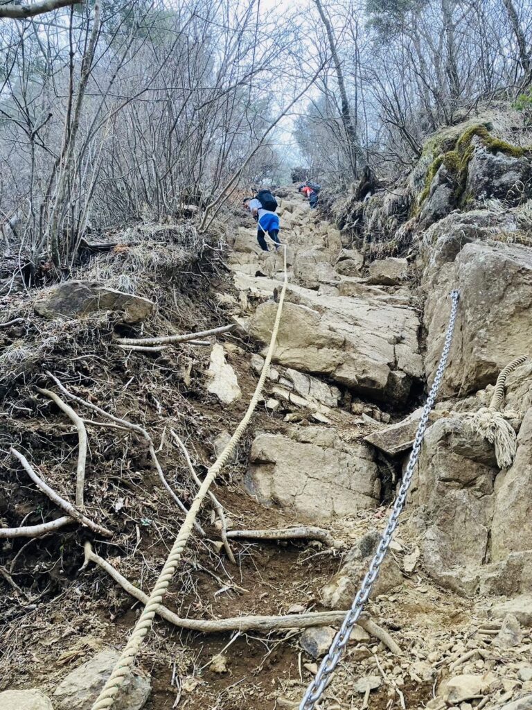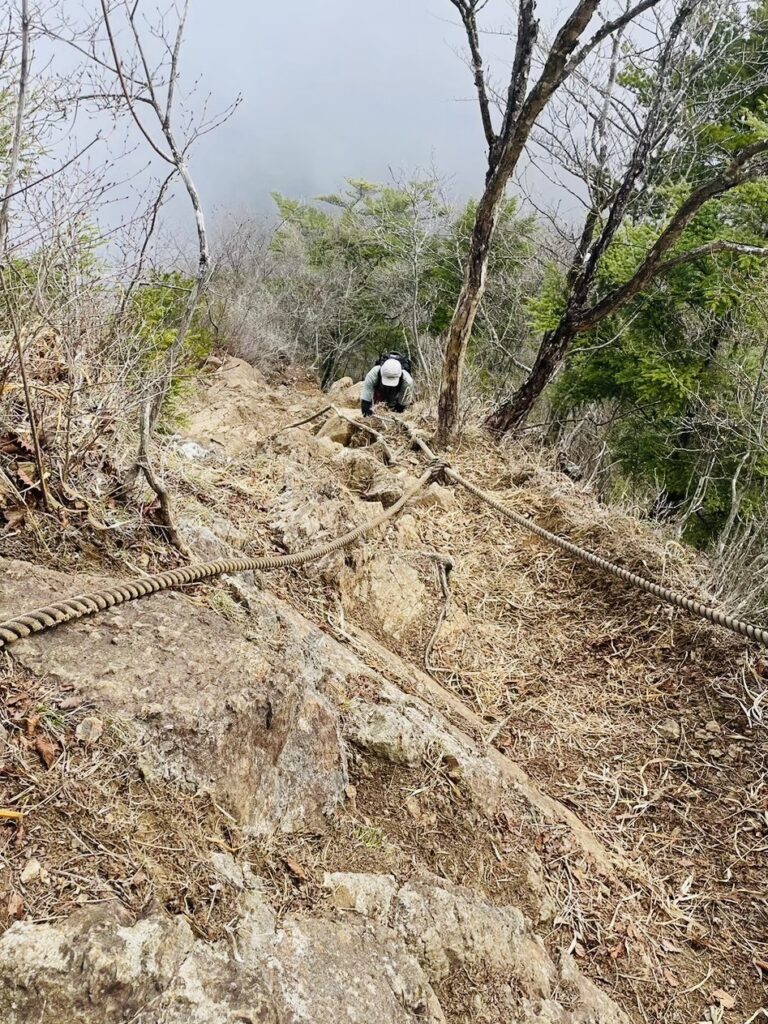 〈急傾斜場のロープ〉 手元、足元をしっかり確認して登ろう!