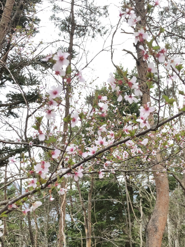 〈マメザクラ〉 本州中部の山地に分布するバラ科の落葉樹です。 日本に自生する原種のサクラの一種で花、葉、樹高が他のサクラほど大きくならないためマメザクラと名付けられたそうです。 富士山や箱根付近い多いため別名は「富士桜」または「箱根桜」とも呼ばれています。