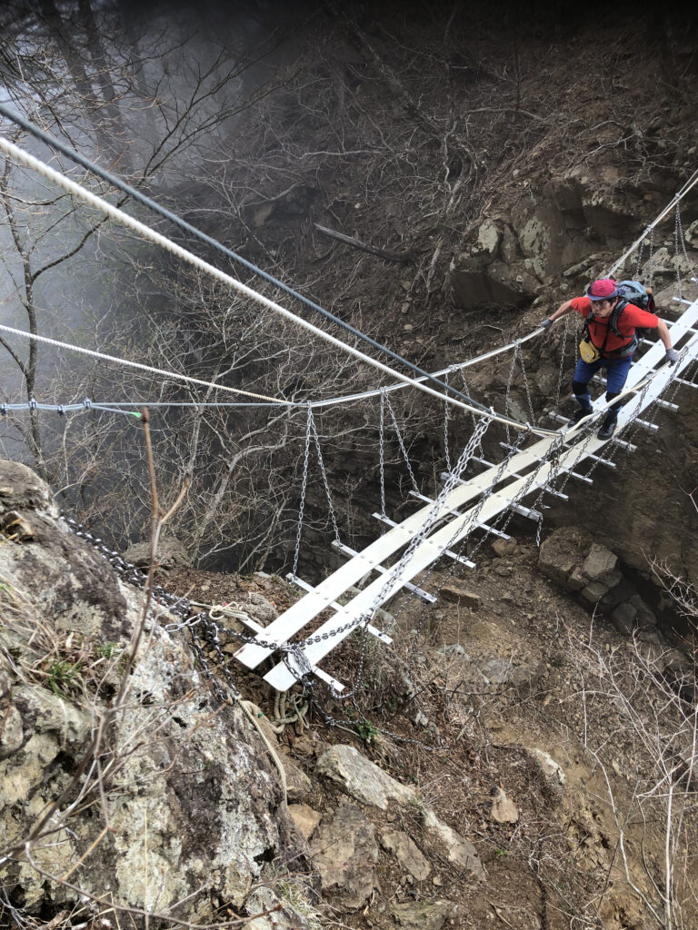 〈長いロープと鎖場では慎重に〉