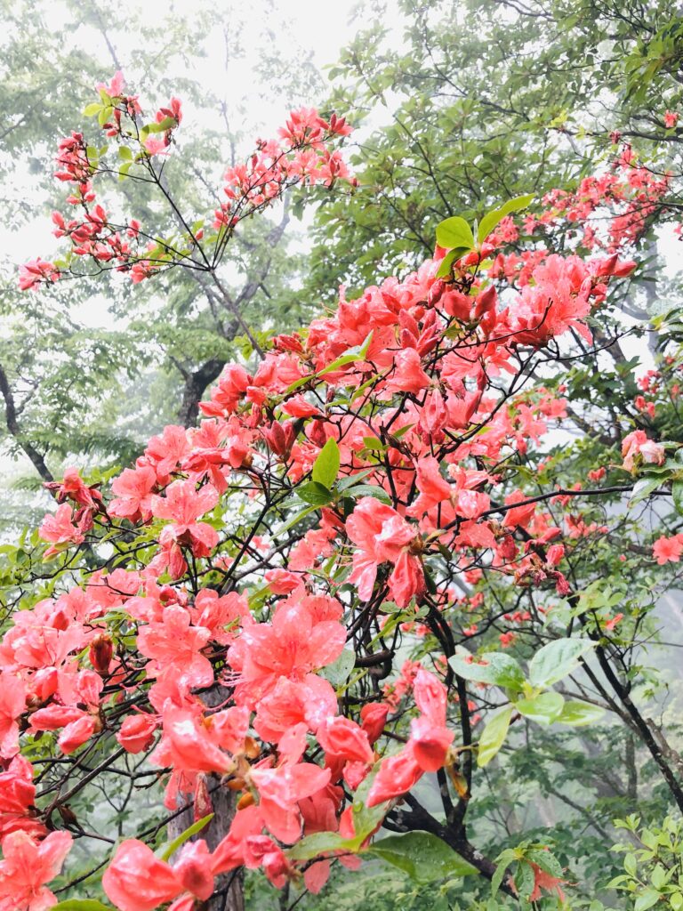 〈山躑躅(やまつつじ)〉 濃厚なガスの中、赤い山躑躅が現れました!