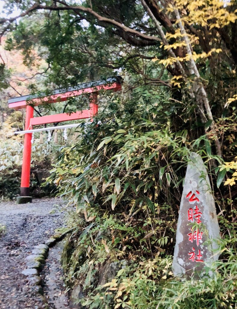 〈金時神社〉 登山前に山行安全をお願いに、金時神社にお参りに行きます。 金時神社は、金時山麓に立つ神社で、金太郎(平安時代後期の武士、源頼光に仕え四天王の1人に数えられた坂田公時)がご祭神として祀られています。 毎年子供の日に行われる「公時まつり」では国の指定文化財に指定されている湯立獅子舞が披露され、多くの人々で賑わうそうです。