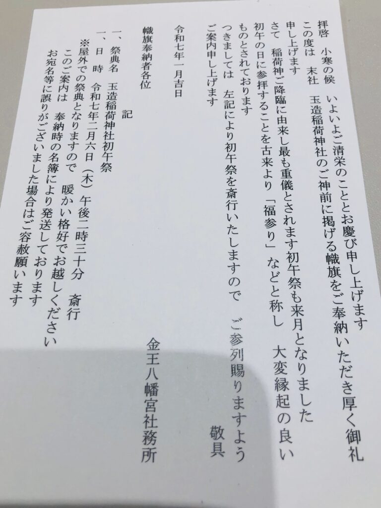 2月初旬、弊社の氏神神社である、金王八幡宮社務所よりご丁寧な『福参り』のご案内がありましたので参列してきました!