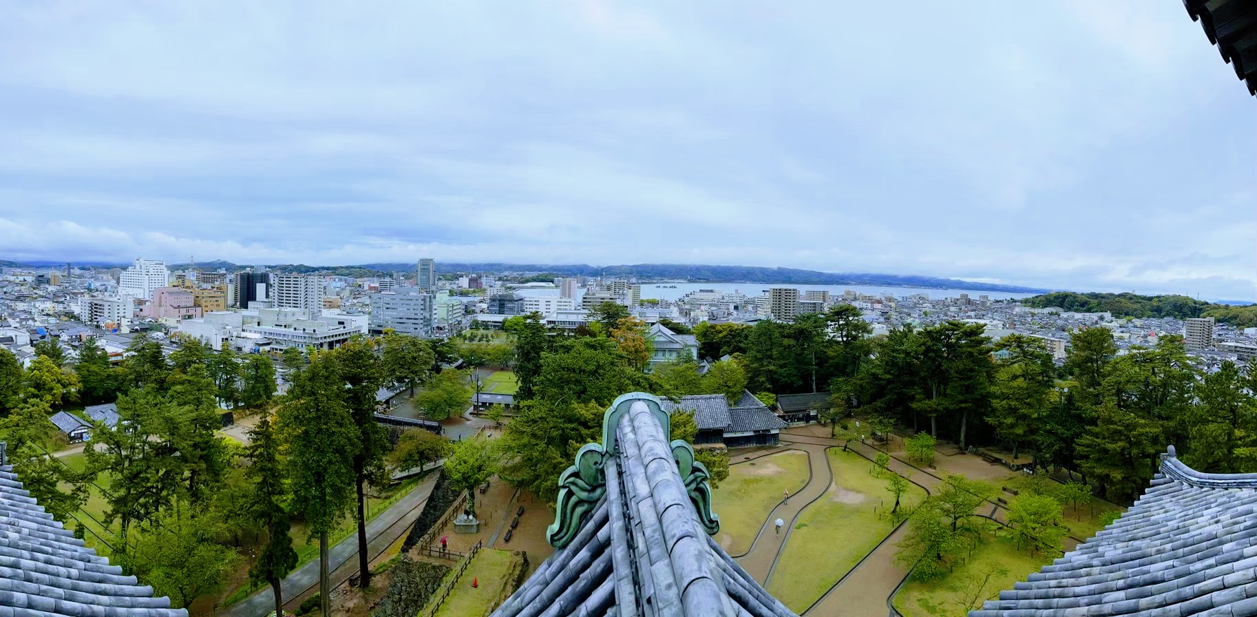 〈天守からの眺め〉 城内を巡り、天守にたどり着きました! 天守最上階は「天狗の間」と呼ばれ、室内には壁がなく城下町を360度展望できるつくりです。 周りに高い建物もないため、遠くに昨日訪れた宍道湖を一望できます! 当時は、敵の監視や攻撃に備えるための司令塔としての役割もあったと言われています。 歴代の松江藩主たちもきっと眺めたていたのでしょうね! 歴史を思い社員一同、松江の風景を存分に堪能しました!!