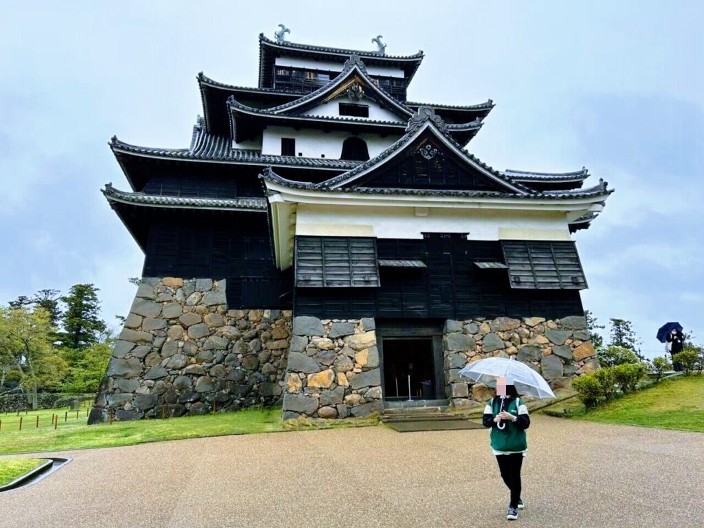 〈近世城郭を代表する国宝天守・松江城〉 松江城は標高29メートルの亀田山に建ち、宍道湖を眺望できる全国に12城しか残っていない現存天守の1つです。 現存天守は江戸時代またはそれ以前に建てられ、壊れることなく現代に姿を残す特別な存在です。 その中でも、慶長16年(1611年)完成の松江城天守は、彦根城、姫路城と並び、近世城郭最盛期を代表する天守として国宝に指定されています。 東西へ広がる曲線の屋根が堂々としていて、風格がありますね!!