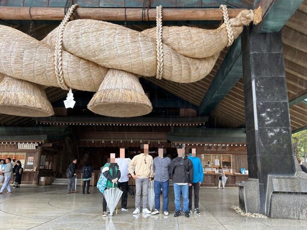 〈霧霞む出雲大社〉 小雨降る中、念願の出雲大社に訪れることが出来ました! 毎年旧暦10月は、日本全国の八百万の神々が出雲に参集されます。全国的には神様がお留守になるこの月を「神無月」と言いますが、神様が集まられる出雲の地に限っては「神在月(かみありづき)」と呼ぶようになりました。そんなことからも、出雲は私たち日本人にとって特別な場所で、そんな場所に会社の仲間と訪れることが出来て、とても良かったです!!