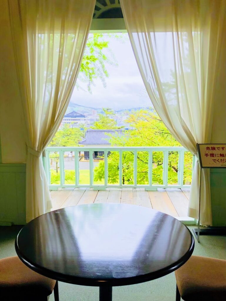 〈興雲閣からの眺め〉 優雅な室内です。 大正天皇もこちらのバルコニーから松江の町を眺めたのでしょうね!