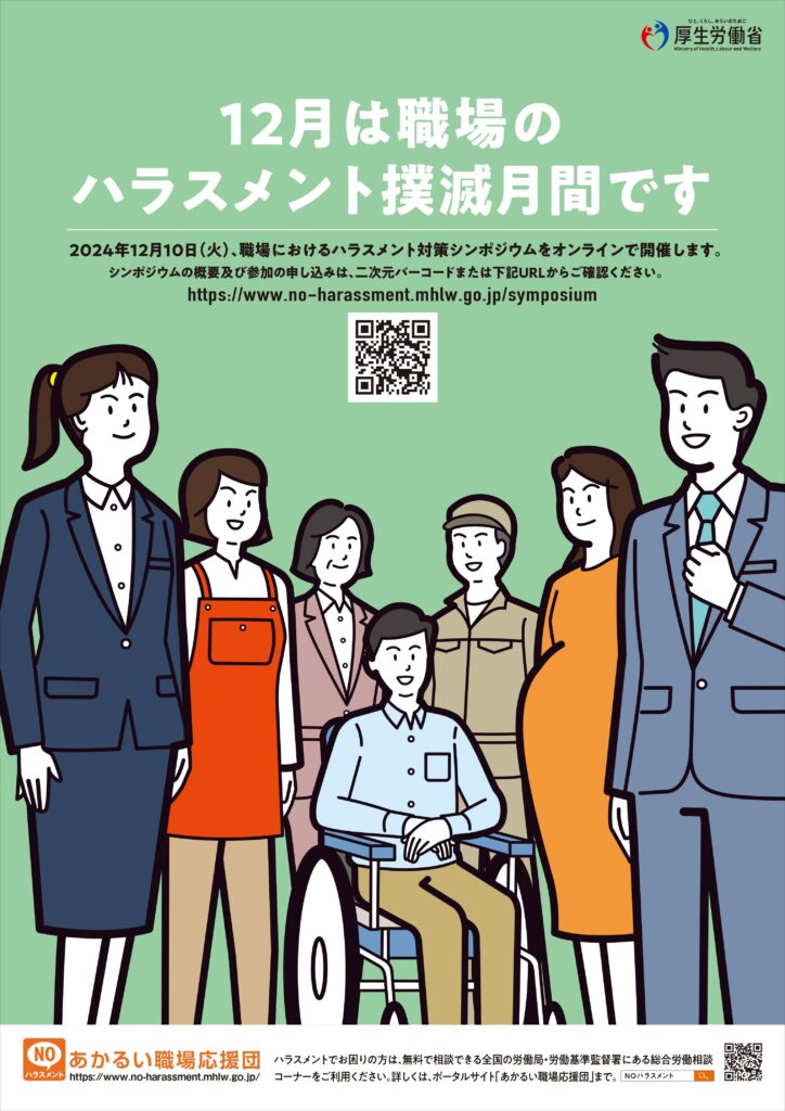 毎年12月は厚生労働省が定める職場のハラスメント撲滅月間です。
